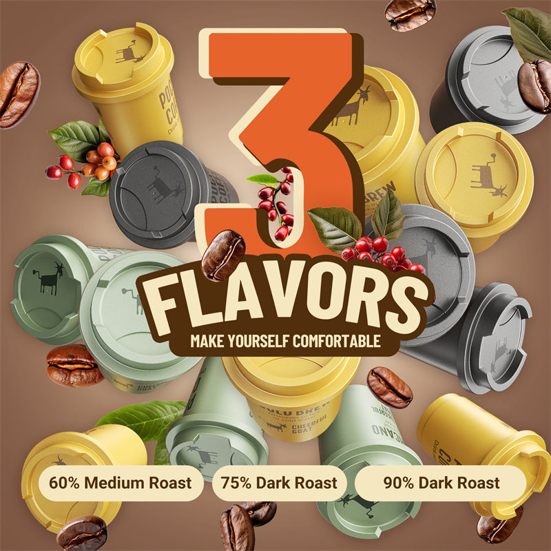 Cheerful Goat Coffee has a rich and lasting aroma. From the moment you open the package, the enticing coffee fragrance fills the air, making you feel as if you are in a coffee plantation.