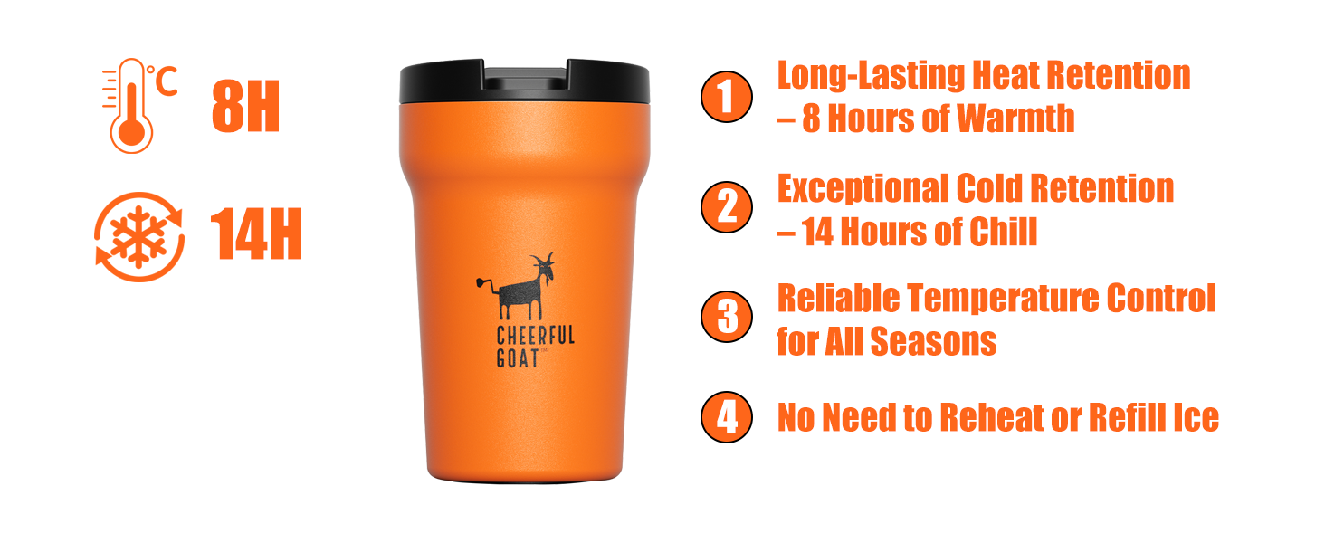 - Keep your drinks hot up to 8 hours
