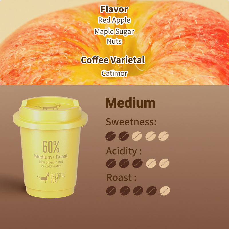 Cheerful Goat Coffee has a rich and lasting aroma. From the moment you open the package, the enticing coffee fragrance fills the air, making you feel as if you are in a coffee plantation.